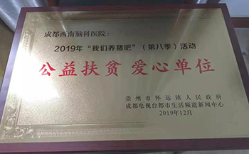 12月,荣获由崇州市怀远镇人民政府及成都电视台都市生活频道新闻中心联合颁发的“公益扶贫爱心单位”