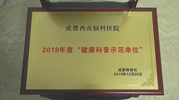 12月20日,荣获由四川省预防医学会、成都商报传媒集团及成都商报四川医生联合颁发的“2019健康科普示范单位”