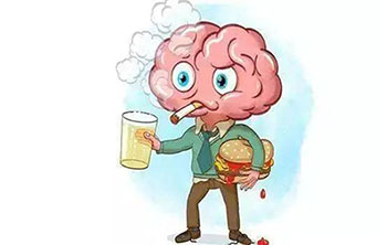 香烟中的尼古丁则会引起血管痉挛,影响大脑正常的神经活动,加速衰老,严重时还会导致脑中风,加大患上老年痴呆症的风险。酗酒也是一类颇为“伤脑筋”的行为。大量饮酒时,酒精就会抑制脑细胞的功能,让人反应迟钝,甚至出现精神障碍。长期大量饮酒会导致酒精中毒性脑病,损伤智力,有基础疾病的人还容易因为饮酒而诱发脑血管意外。