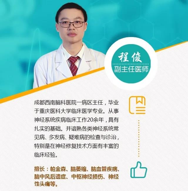 患者郑先生,46岁,脑出血后9+月,失语,记忆力、理解力、认知力、计算力较病前明显下降。我院三病区主任程俊医生接诊后,询问姓名、年龄等简单问题,患者均不能作答,“100减7”不能运算,吃饭、做事只能模仿别人动作,无法正常社交和工作,被诊断为“血管性痴呆”。
