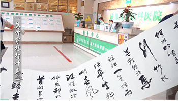 这次来到成都西南脑科医院,找院内医生看过病情后,对西南脑科治疗帕金森的效果表示肯定和赞许。随后,身为国学大家的他为我们送上了他手书的4米长墨宝《定风波》。