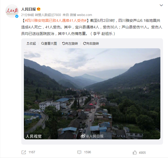 四川雅安芦山县发生6.1级地震