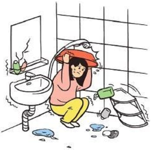 遇地震,莫惊慌,保镇静,少伤亡。先颠簸,是近震,只摇晃,震必远。是远震,不用管,若近震,莫等闲。住楼房,别慌张,到小间,暂躲藏。厨与厕,牢又坚,跨度小,较安全!