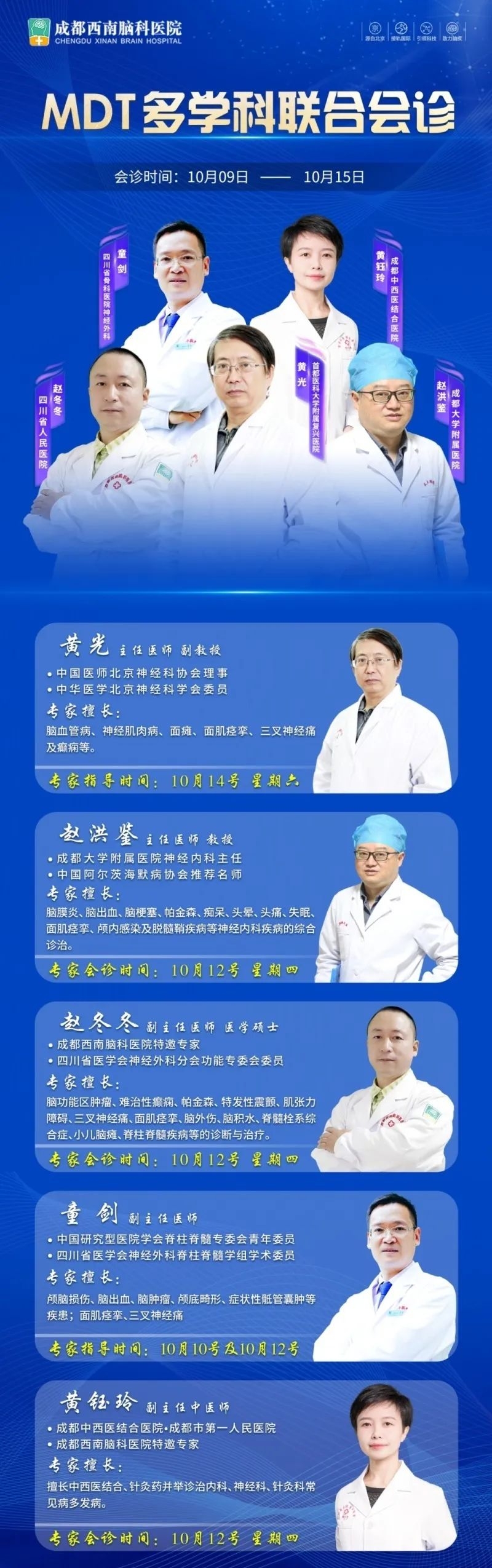 成都西南脑科医院自建院以来,一直把患者的利益放在第一位。为了满足患者的就诊需求,医院不定期邀请请京川两地医生来院会诊,让更多患者接受系统专业的治疗,帮助脑病患者早日恢复健康!