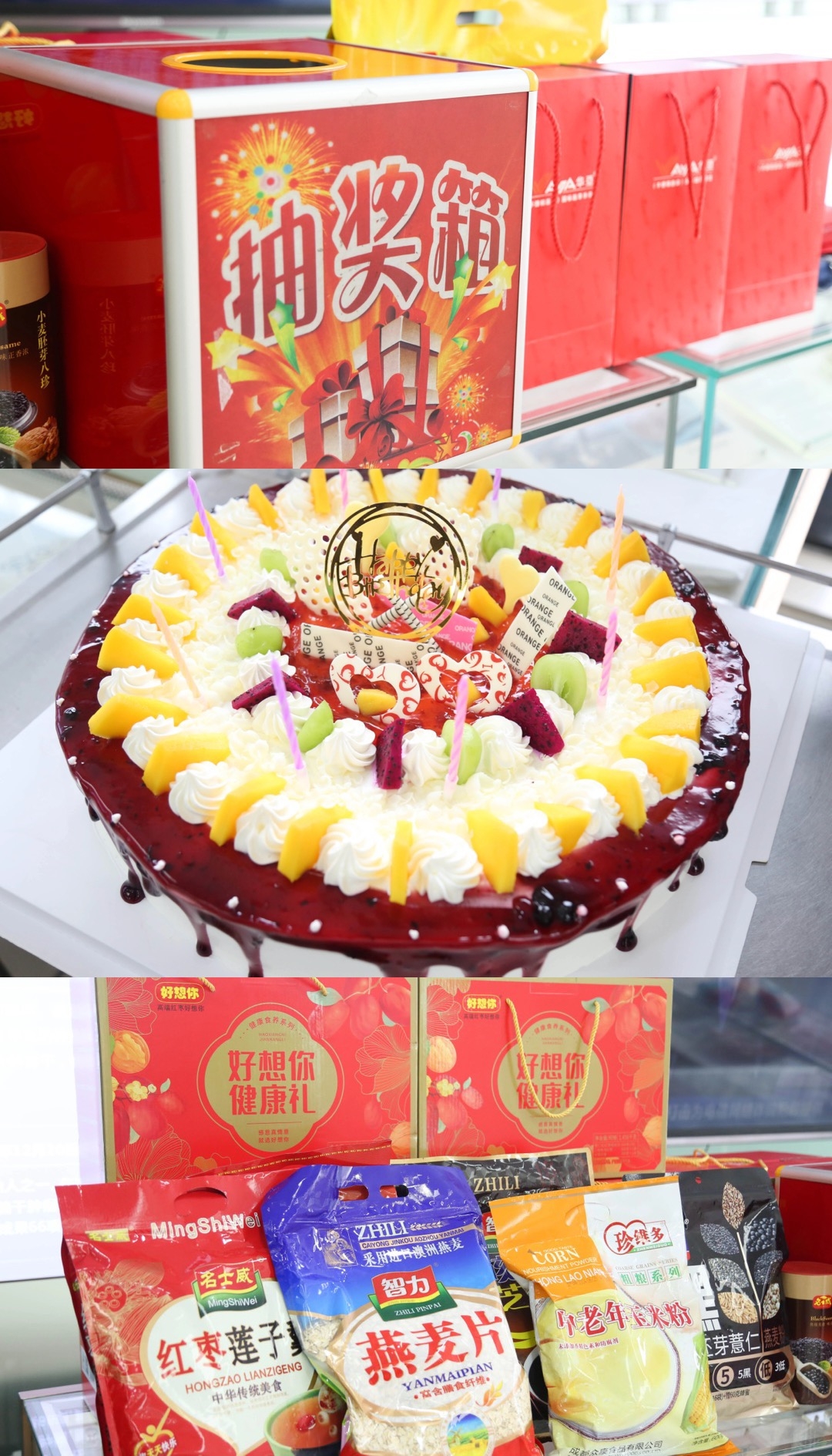 接下来就是激动人心的抽奖时刻,寿星及现场观众都有机会抽取属于自己的幸运大奖。大家兴致勃勃,现场有欢笑、有掌声,也有感动的热泪盈眶。