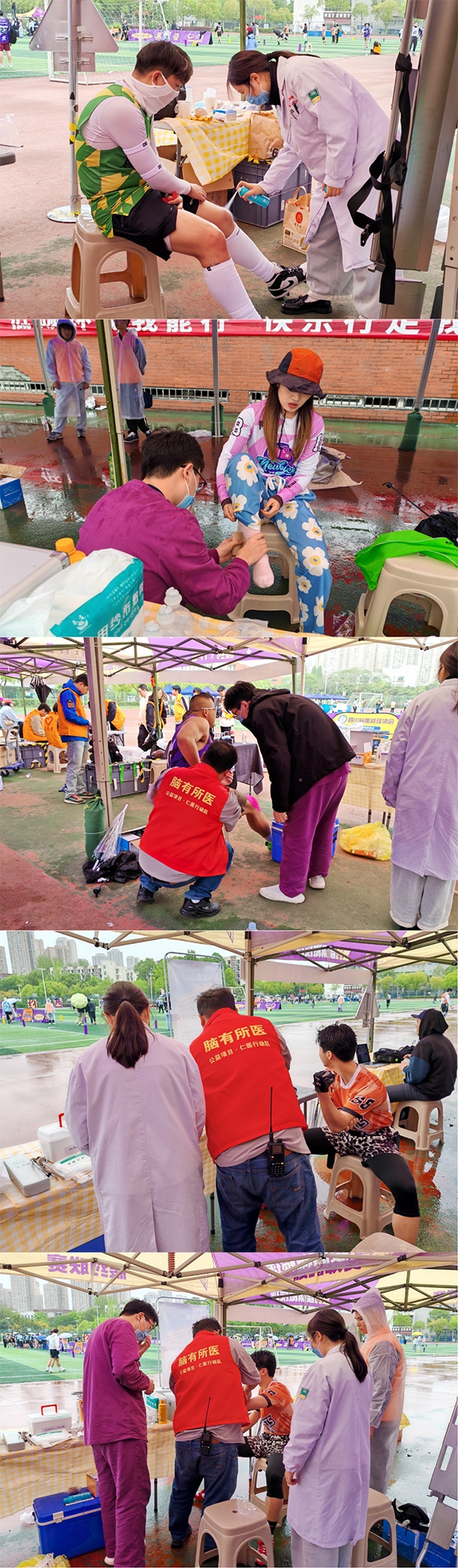 从赛前教大家科学热身,到比赛过程中提供医疗急救保障,再赛后指导放松恢复,脑有所医·仁医行动队全程守护选手健康。