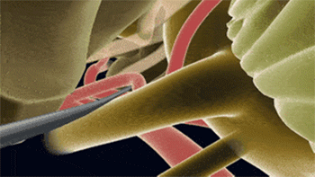 显微血管减压术,通俗来讲,就是将互相压迫的神经、血管分离开的手术方法。目前已成为治疗三叉神经痛、面肌痉挛的标准方法。